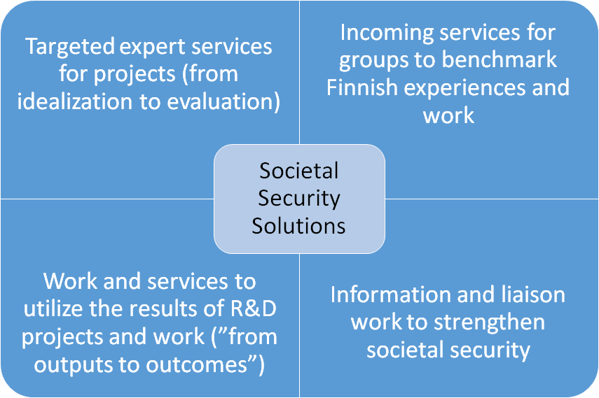- Information and liaison work to strengthen societal security. We assist our customers in realising the full potential of societal security and its various dimensions.